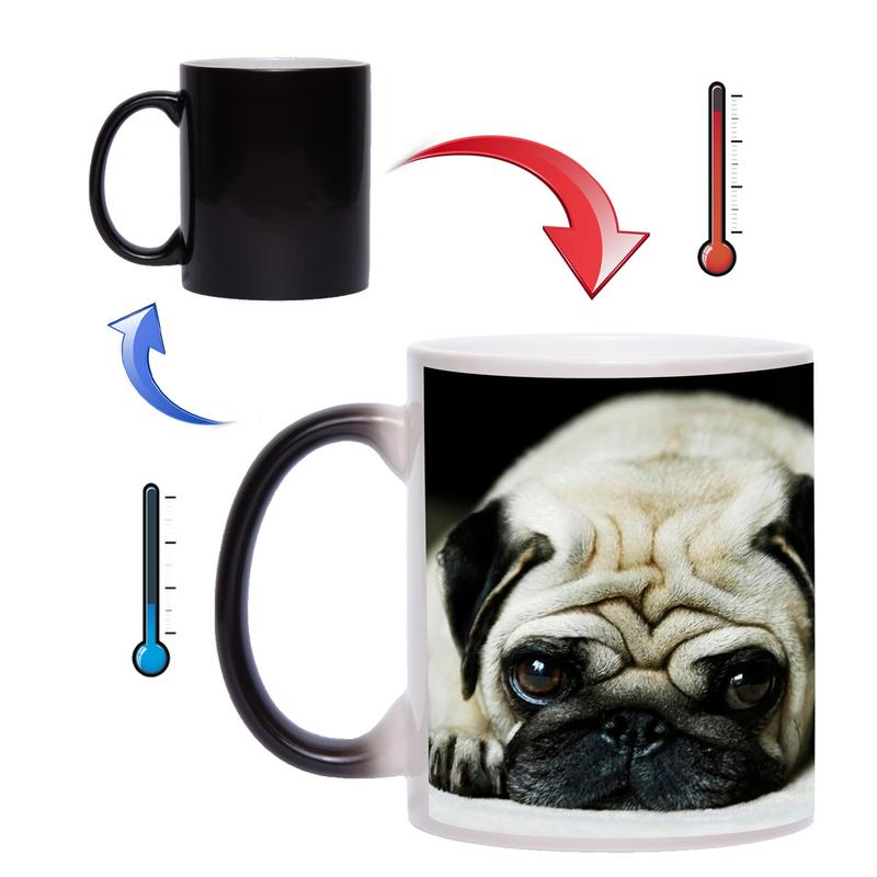 Чашка хамелеон - оригинальный подарок для Ваших друзей, коллег и близких людей. При наполнении кипятком, на чашке хамелеон проявляется милое изображение мопсика. Данная чашка будет стильным подарком к любому празднику. Сделайте обычное чаепитие ярким и интересным с чашкой хамелеон!