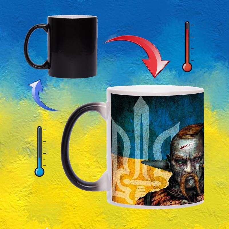 Чашка хамелеон - оригинальный подарок для Ваших друзей, коллег и близких людей. При наполнении кипятком, на чашке хамелеон проявляется красочное изображение воина-козака. Данная чашка будет стильным подарком к любому празднику. Сделайте обычное чаепитие ярким и интересным с чашкой хамелеон! Слава Украине!