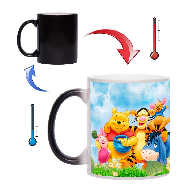 Чашка хамелеон - оригинальный подарок для Ваших друзей, коллег и близких людей. При наполнении кипятком, на чашке хамелеон проявляется милое изображение героев мультфильма "Винни Пух". Данная чашка будет стильным подарком к любому празднику. Сделайте обычное чаепитие ярким и интересным с чашкой хамелеон!