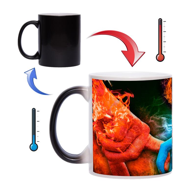 Чашка хамелеон - оригинальный подарок для Ваших друзей, коллег и близких людей. При наполнении кипятком, на чашке хамелеон проявляется красивая абстракция воды и огня. Данная чашка будет стильным подарком к любому празднику. Сделайте обычное чаепитие ярким и интересным с чашкой хамелеон!