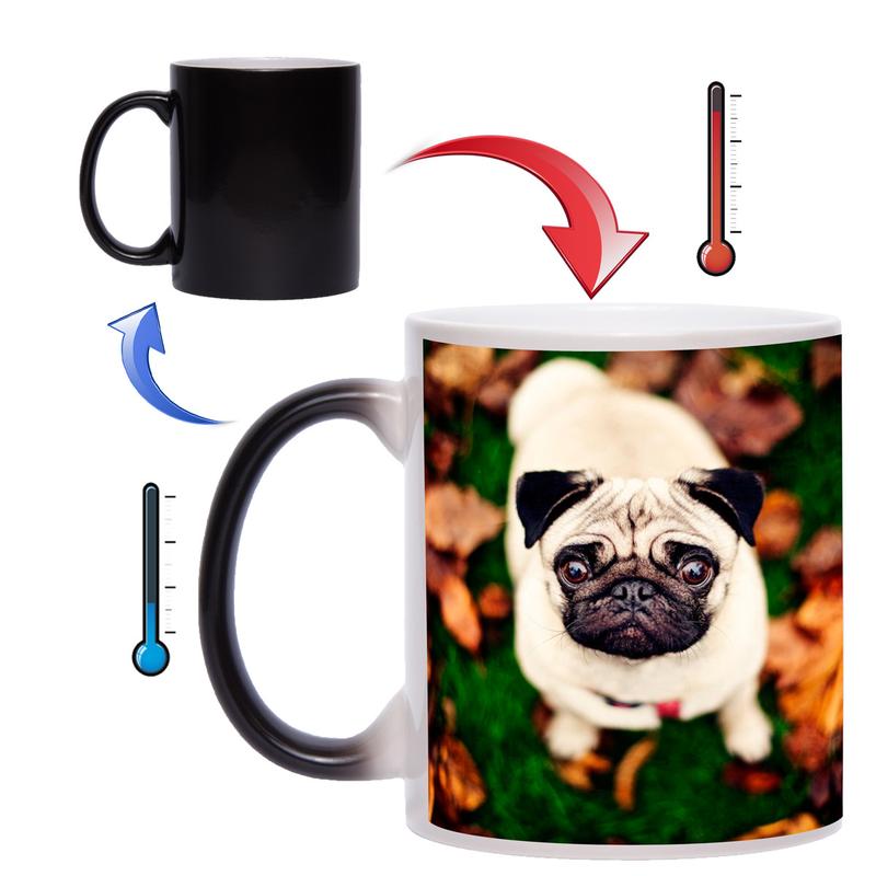 Чашка хамелеон - оригинальный подарок для Ваших друзей, коллег и близких людей. При наполнении кипятком, на чашке хамелеон проявляется милое изображение мопсика. Данная чашка будет стильным подарком к любому празднику. Сделайте обычное чаепитие ярким и интересным с чашкой хамелеон!