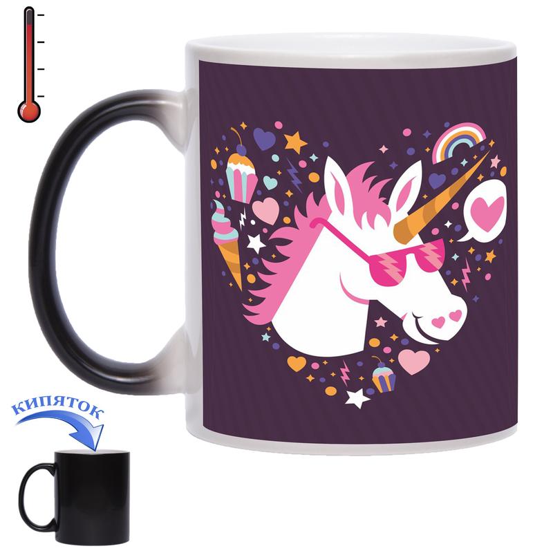 Чашка-хамелеон - оригинальный подарок для Ваших друзей, коллег и близких людей. Волшебный единорог в ярких очках и зефирной гривой готов исполнить Ваши сладкие желания! Наполните чашку любимым горячим напитком и пусть все Ваши мечты осуществятся! Также в наличии подарочные коробки. Подберём для Вашей чашки самую лучшую! Сделайте чаепитие ярким и интересным с чашкой-хамелеон!