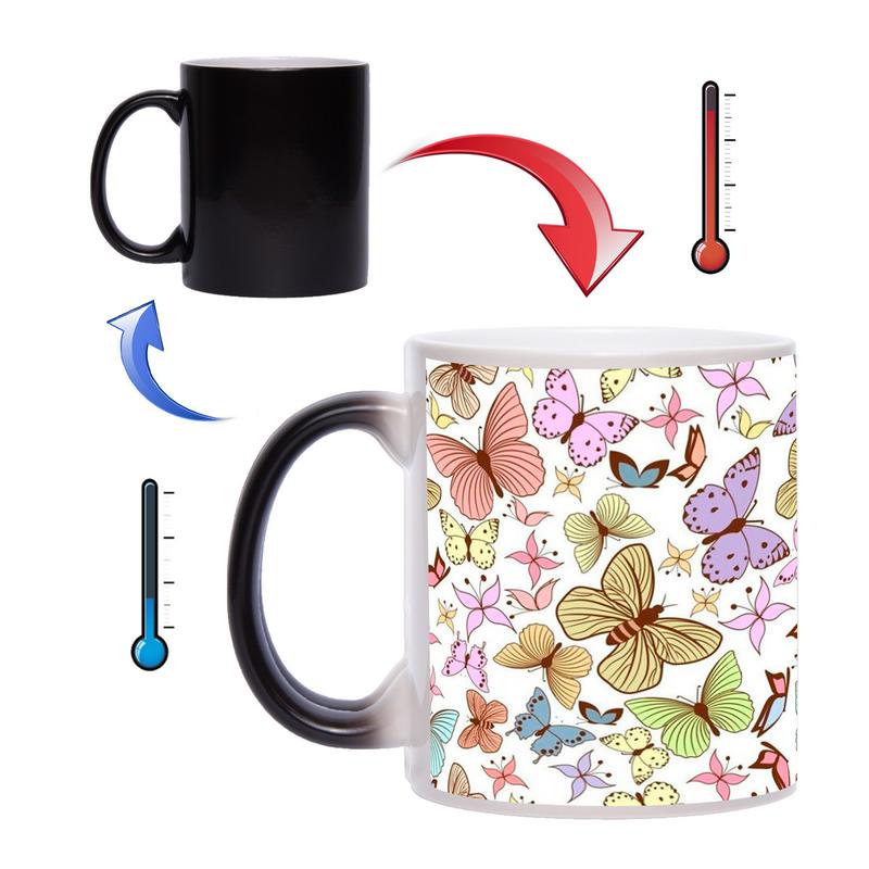 Чашка хамелеон - оригинальный подарок для Ваших друзей, коллег и близких людей. При наполнении кипятком, на чашке хамелеон проявляется красивое изображение разноцветных бабочек. Данная чашка будет стильным подарком к любому празднику. Сделайте обычное чаепитие ярким и интересным с чашкой хамелеон!