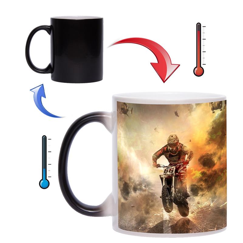 Чашка хамелеон - оригинальный подарок для Ваших друзей, коллег и близких людей. При наполнении кипятком, на чашке хамелеон проявляется красочное изображение мотоциклиста. Данная чашка будет стильным подарком к любому празднику. Сделайте обычное чаепитие ярким и интересным с чашкой хамелеон!