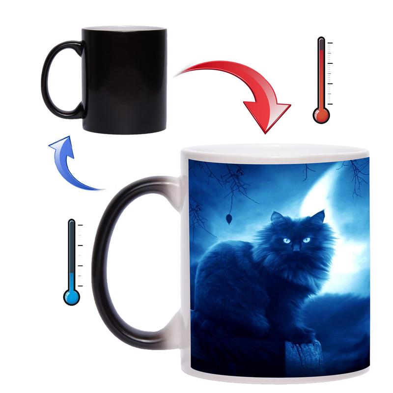Чашка хамелеон - оригинальный подарок для Ваших друзей, коллег и близких людей. При наполнении кипятком, на чашке хамелеон проявляется красочное изображение кота на фоне луны. Данная чашка будет стильным подарком к любому празднику. Сделайте обычное чаепитие ярким и интересным с чашкой хамелеон!