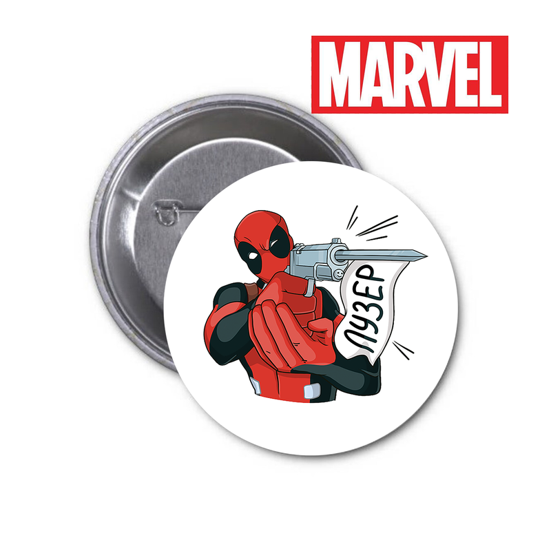Значок Marvel Deadpool Марвел Дедпул Можна причепити на рюкзак, сумку тощо. Діаметр круглого значка 58мм Ціна за 1шт