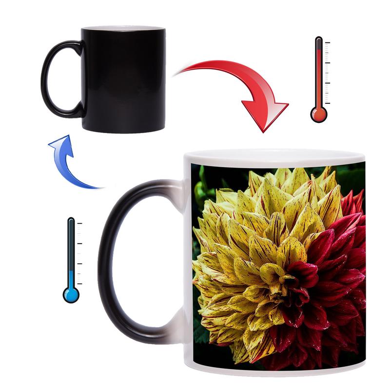 Чашка хамелеон - оригинальный подарок для Ваших друзей, коллег и близких людей. При наполнении кипятком, на чашке хамелеон проявляется красочное изображение цветка георгина. Данная чашка будет стильным подарком к любому празднику. Сделайте обычное чаепитие ярким и интересным с чашкой хамелеон!