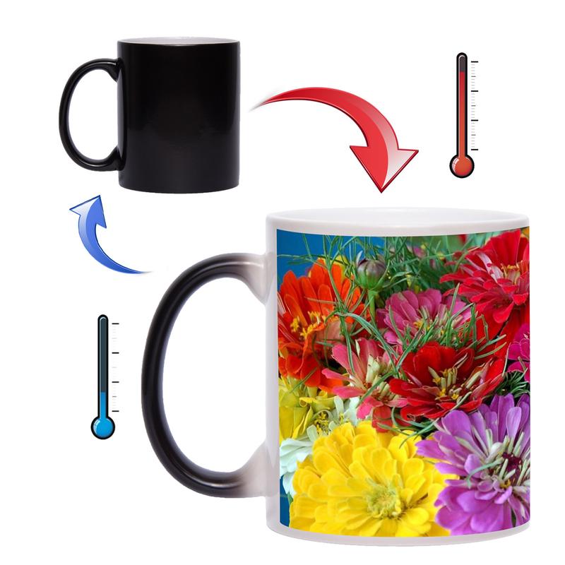 Чашка хамелеон - оригинальный подарок для Ваших друзей, коллег и близких людей. При наполнении кипятком, на чашке хамелеон проявляется красочное изображение цветов. Данная чашка будет стильным подарком к любому празднику. Сделайте обычное чаепитие ярким и интересным с чашкой хамелеон!