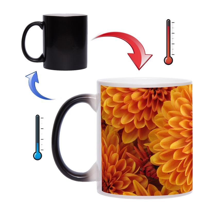 Чашка хамелеон - оригинальный подарок для Ваших друзей, коллег и близких людей. При наполнении кипятком, на чашке хамелеон проявляется красочное изображение георгин. Данная чашка будет стильным подарком к любому празднику. Сделайте обычное чаепитие ярким и интересным с чашкой хамелеон!
