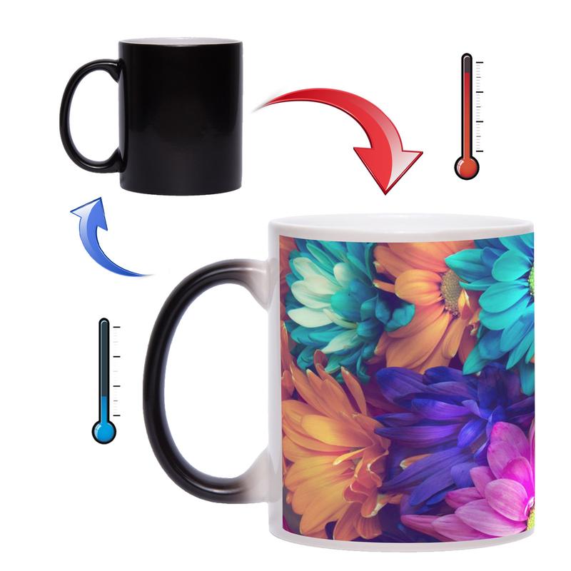 Чашка хамелеон - оригинальный подарок для Ваших друзей, коллег и близких людей. При наполнении кипятком, на чашке хамелеон проявляется красочное изображение разноцветных цветов. Данная чашка будет стильным подарком к любому празднику. Сделайте обычное чаепитие ярким и интересным с чашкой хамелеон!