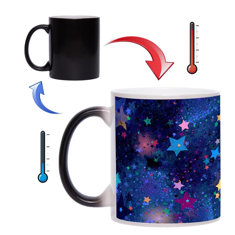 Чашка хамелеон - оригинальный подарок для Ваших друзей, коллег и близких людей. При наполнении кипятком, на чашке хамелеон проявляется красочный рисунок разноцветных звёздочек. Данная чашка будет стильным подарком к любому празднику. Сделайте обычное чаепитие ярким и интересным с чашкой хамелеон!