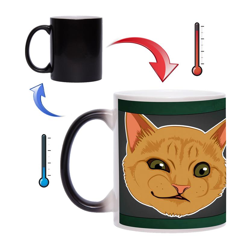 Чашка хамелеон - оригинальный подарок для Ваших друзей, коллег и близких людей. При наполнении кипятком, на чашке хамелеон проявляется красочный рисунок мордочки котика. Данная чашка будет стильным подарком к любому празднику. Сделайте обычное чаепитие ярким и интересным с чашкой хамелеон!