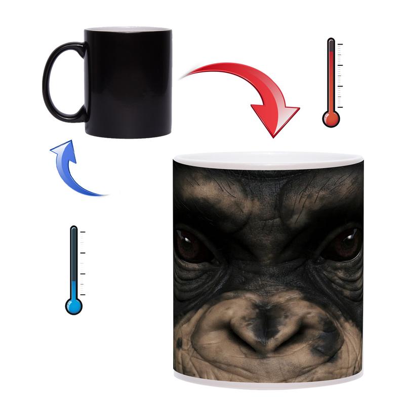 Чашка хамелеон - оригинальный подарок для Ваших друзей, коллег и близких людей. При наполнении кипятком, на чашке хамелеон проявляется красочное изображение мордочки обезьянки. Данная чашка будет стильным подарком к любому празднику. Сделайте обычное чаепитие ярким и интересным с чашкой хамелеон!
