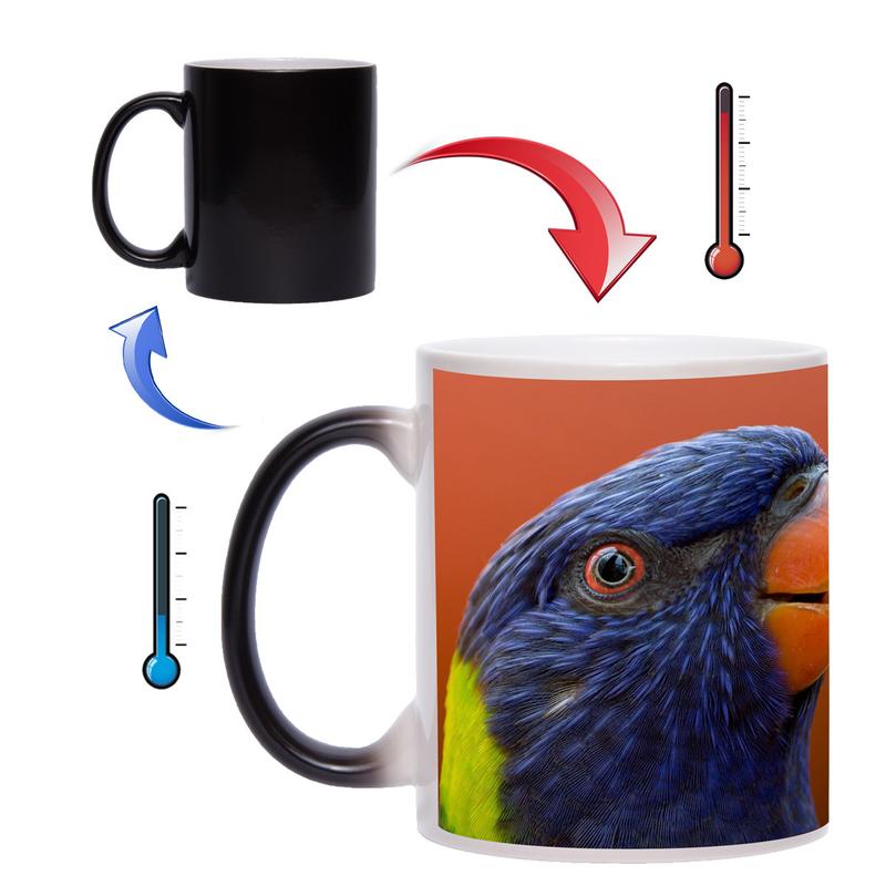Чашка хамелеон - оригинальный подарок для Ваших друзей, коллег и близких людей. При наполнении кипятком, на чашке хамелеон проявляется красочное изображение попугая. Данная чашка будет стильным подарком к любому празднику. Сделайте обычное чаепитие ярким и интересным с чашкой хамелеон!