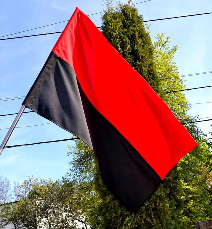 Червоно-чорний стяг - це прапор Української повстанської армії. Він впевнено збільшує свою популярність вже не тільки на теренах Західної України. Надаємо можливість кожному свідомому українцю продемонструвати свою громадянську позицію, підтримати незламний дух нації та наблизити перемогу! Прапор виготовлено з двох смуг однакового розміру з нейлону чорного та червоного кольорів. Загальний розмір 90 х 135 см. Надійні шви та насичені кольори тканини забезпечують строк експлуатації від 1 року і більше. В бічній частині є спеціальний манжет (ширина 7 см) для держака прапора.