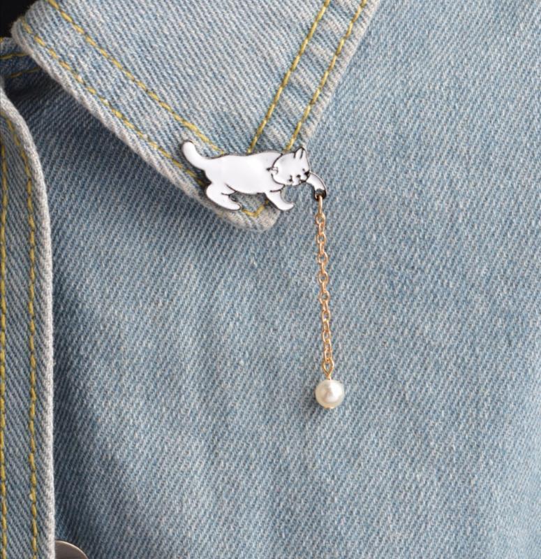 Значок котик с цепочкой пин металлический кот Красивый значок станет отличным подарком или просто поводом для маленькой радости. Крепится с помощью гвоздика и металлического фиксатора (застежки). Очень хорошее качество исполнения. Металлический сверху покрыт эмалью.