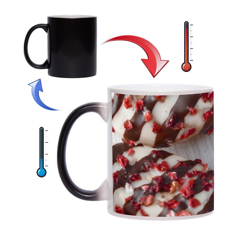 Чашка хамелеон - оригинальный подарок для Ваших друзей, коллег и близких людей. При наполнении кипятком, на чашке хамелеон проявляется красочное изображение пончиков. Данная чашка будет стильным подарком к любому празднику. Сделайте обычное чаепитие ярким и интересным с чашкой хамелеон!