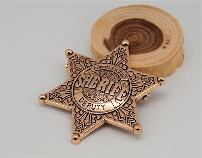 Значок "Sheriff ", метал (колір — золото), висота 5,50 см, ширина 5,50 см, товщина металу 0,22 см, кріплення — шпилька, вага 15.60 гм.