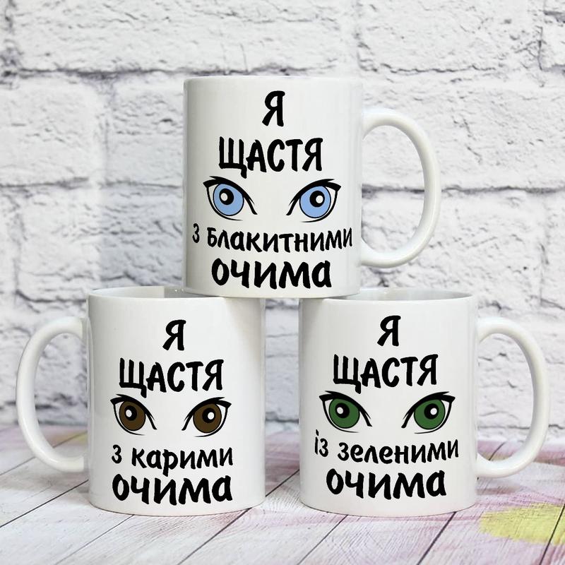 Чашка для влюбленных на подарок "счастье с карими, голубыми или зелеными глазами"
