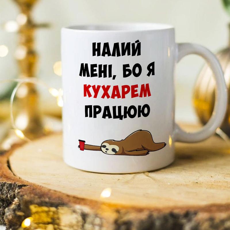 Оригинальная чашка с приколом для шеф-повара "налей мне, а то я поваром работаю"