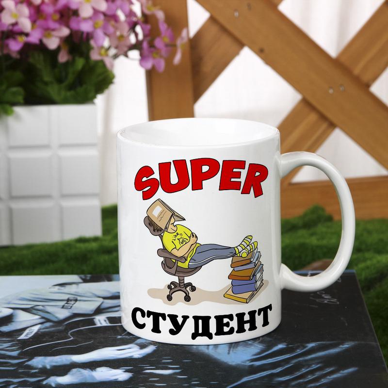 Прикольная чашка для студента с надписью "супер студент"