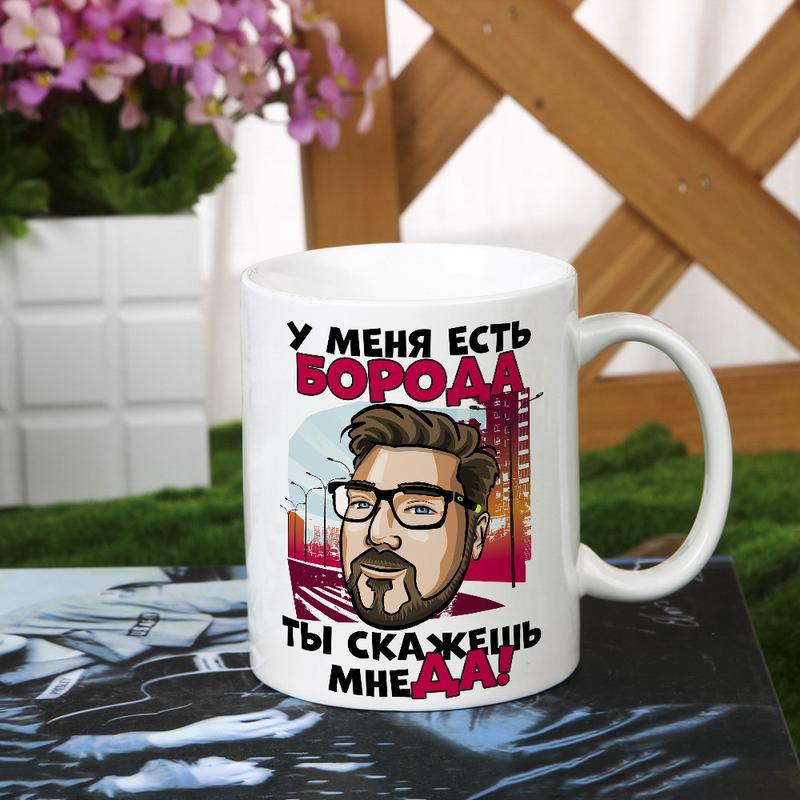 Мужская чашка "у меня есть борода, ты скажешь мне да"