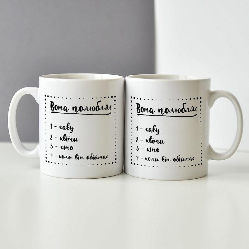 Набір парних чашок для закоханих "він та вона полюбляють"