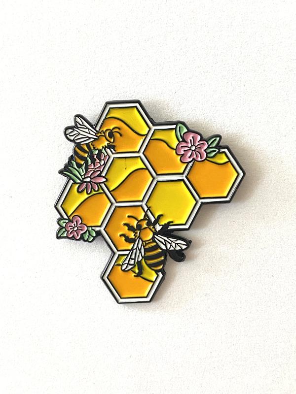 Эмалированный значок pin пин на рюкзак, куртку (джинс) соты мед пчелки пчелки
