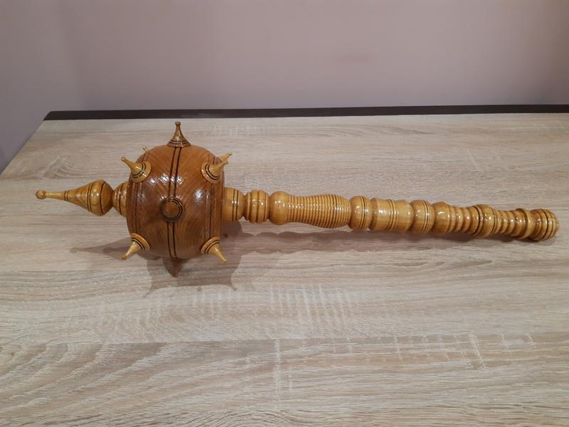 Булавы ручной работы. Материал - дерево. Лакированные Длина наименьшей булавы - 50 сантиметров, самой длинной - 63 сантиметра. Цена при 4 - 1400 грн.