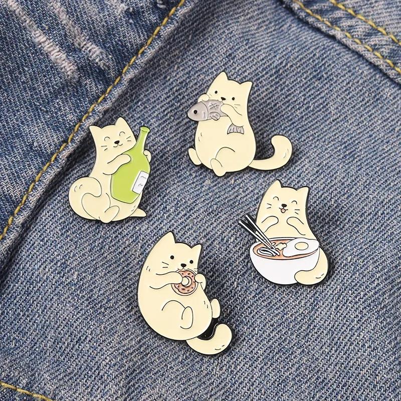 Набор значков / пинов металлических милые кошки с едой (4 шт)