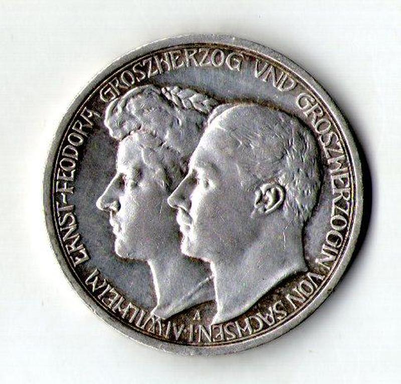 Німеччина САКСЕН-ВЕЙМАР-АЙЗЕНАХ 3 марки " весілля " СРІБЛО 1910 рік №1015