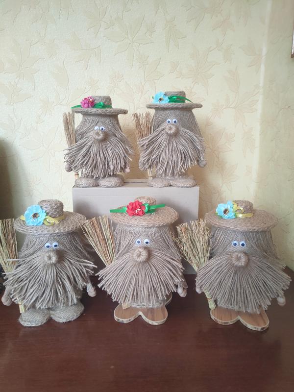 Домовик предохраняет высота 22см, 21 см, ручная работа. Изготовлен из мешковины, жгута. На подарок, для декора, сувенир. Цена 420 грн за один. Все на фото есть в наличии.