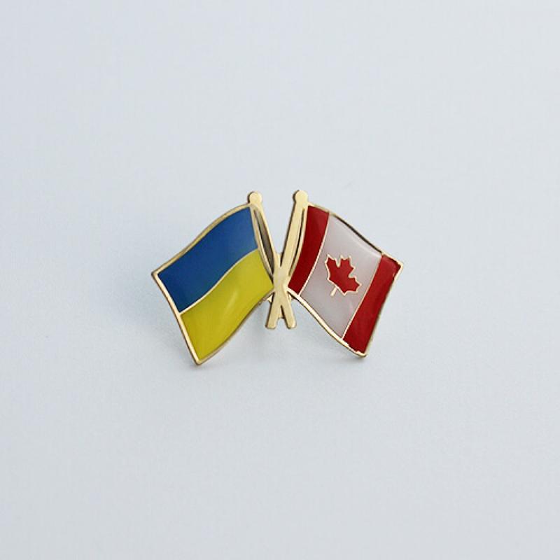 Металлический нагрудный значок в виде флага украины и канады (позолоченные)