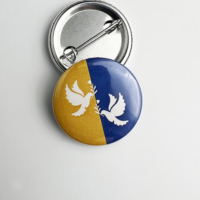 Круглий значок dobroznak з логотипом блакитні на прапорі 36 мм