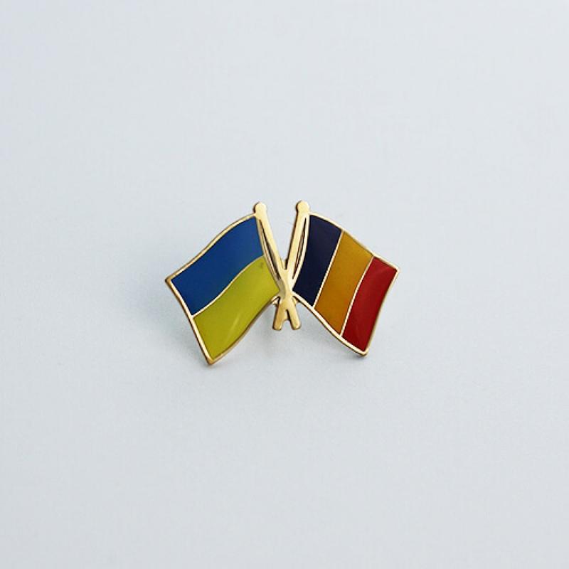 Металлический значок флаг украины и румынии (позолоченные) 6142