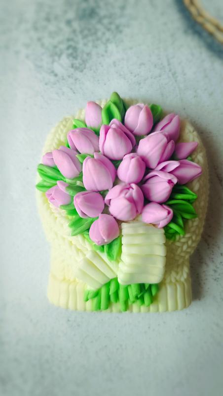 Сувенирное мыло ручной работы в виде свитерка и букета тюльпанов. Аромат цветочный. Цена указана за мыло + прозрачный пакетик с ленточкой. Упаковка коробка- 110 грн