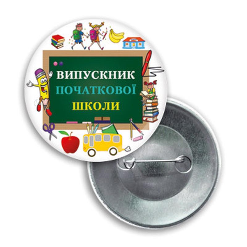 Закатной значок круглый для выпускников "ВЫПУСКНИК НАЧАЛЬНОЙ ШКОЛЫ" (на укр.яз.). Также Вы можете подобрать розетку или ленточку под значок выпускнику -> ССЫЛКА. Срок выполнения заказа на выпускные значки: - до 30 апреля - 1-2 рабочих дня; - с 1 по 12 мая - 1-3 рабочих дня; - с 13 по 25 мая - 2-4 рабочих дня. Срочные заказы значков на выпускной - "на завтра" или "день-в день" - согласовываются в индивидуальном порядке и принимаются в работу только после 100%-й предоплаты. Если Вы хотите заказать производство значков с Вашей картинкой или логотипом, перейдите по ССЫЛКЕ.