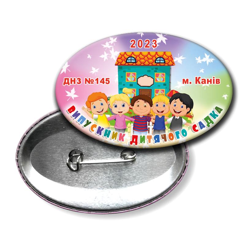 Закатной значок "ВЫПУСКНИК ДЕТСКОГО САДА 2024" (на укр.яз.). Номер детского сада и название группы заменяются. Также Вы можете подобрать розетку или ленточку под значок -> ССЫЛКА. Срок выполнения заказа на выпускные значки: - до 30 апреля - 1-2 рабочих дня; - с 1 по 12 мая - 1-3 рабочих дня; - с 13 по 25 мая - 2-3 рабочих дня. Срочные заказы значков на выпускной - "на завтра" или "день-в день" - согласовываются в индивидуальном порядке и принимаются в работу только после 100%-й предоплаты. Если Вы хотите заказать производство значков с Вашей картинкой или логотипом, перейдите по ССЫЛКЕ.