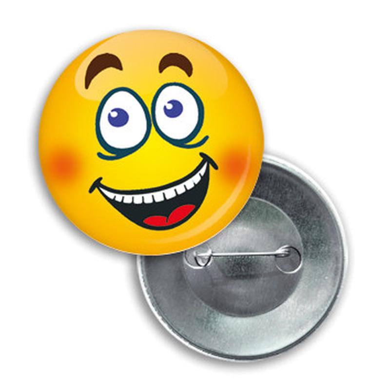 Закатной значок - смайлик - "Смешок". Диаметр значка - 56 мм.