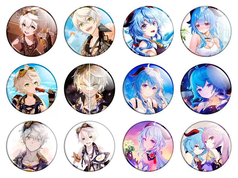 Значки аниме треос "genshin impact" (женшин импакт) - набор 12 шт. (арт. 135372)