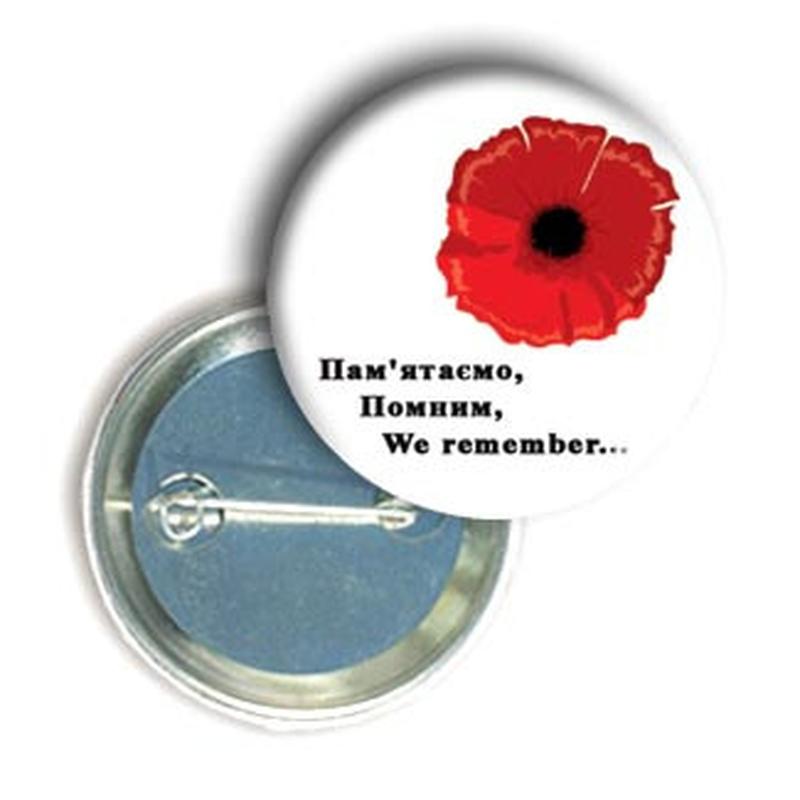 Закатной значок - "Пам'ятаємо... Помним... We remember..." Если Вас интересует производство значков с Вашей картинкой или логотипом, перейдите по ССЫЛКЕ.