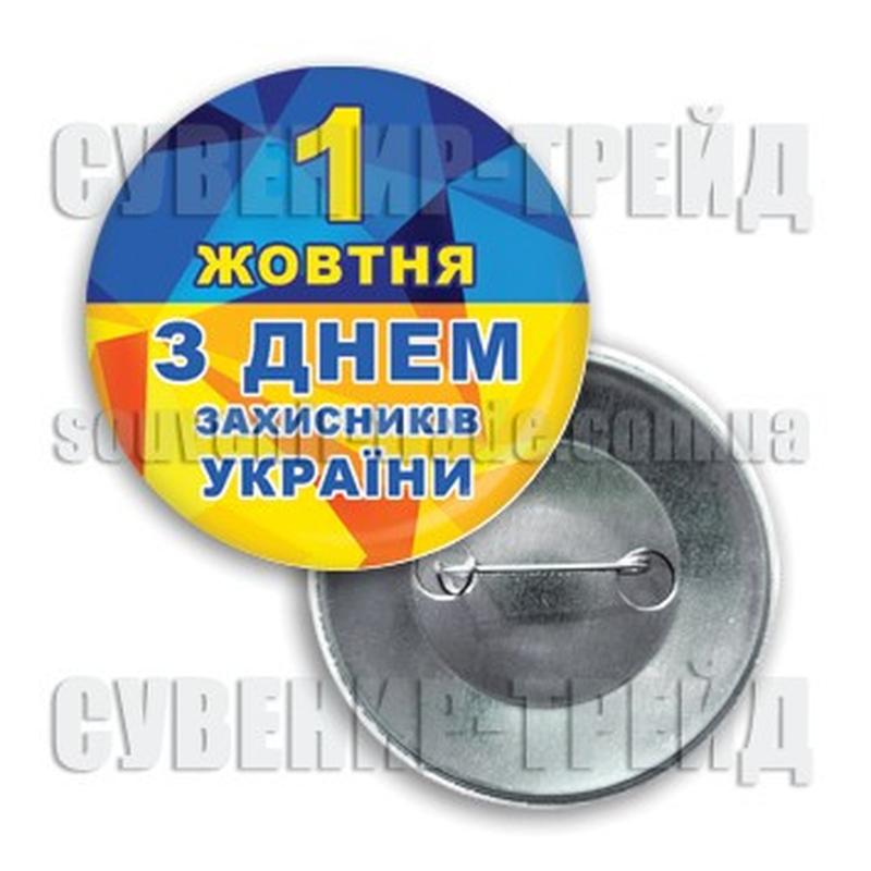 Закатний значок в подарунок на 1 жовтня - Дня Захисника України (1 жовтня - Дня Захисника України). Діаметр значка - 56 мм