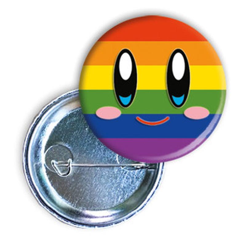 Закатной значок круглый с ЛГБТ-символикой "Радужный смайлик". Диаметр значка - 43 мм.