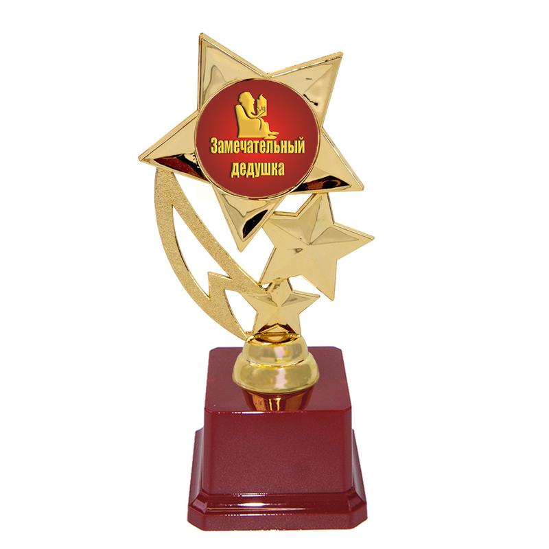 Статуэтка 57265 Замечательный дедушка Звездный полет - отличный и оригинальный сюрприз, которую можно подарить дедушке на юбилей, на день рождения или просто в качестве презента вместе с каким либо подарком. Подарок символичен и необычен, говорящий как дорог для Вас поздравляемый человек! Статуэтка выполнена в виде 3D композиции человека с медалью. Фигурка выполнена золотым цветом на классическом бордовом пьедестале. Статуэтка упаковывается в индивидуальный подарочный тубус из прозрачного пластика. Уникальная упаковка разработана компанией Карнавал Приколов. На бордовом пьедестале статуэтки может присутствовать имитация мраморных разводов. Оригинальные награды и призы в наличии и на заказ – отличная цена. Большой выбор кубков, медалей и наградных статуэток для любого повода в интернет магазине Карнавал Приколов.