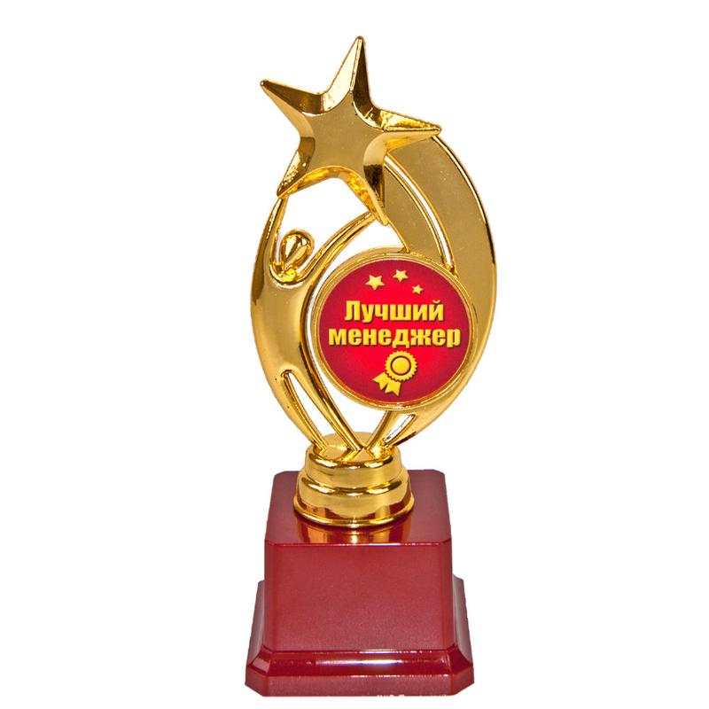 Статуэтка 57107 Лучший менеджер Звездный час - отличная и оригинальная награда, ее можно вручить лучшему менеджеру. Подарок символичен и необычен, говорящий как дорог для Вас поздравляемый человек! Статуэтка выполнена в виде 3D композиции звезд. Фигурка выполнена золотым цветом на классическом бордовом пьедестале. Статуэтка упаковывается в индивидуальный подарочный тубус из прозрачного пластика. Уникальная упаковка разработана компанией Карнавал Приколов. На бордовом пьедестале статуэтки может присутствовать имитация мраморных разводов. Оригинальные награды и призы в наличии и на заказ – отличная цена. Большой выбор кубков, медалей и наградных статуэток для любого повода в интернет магазине Карнавал Приколов.