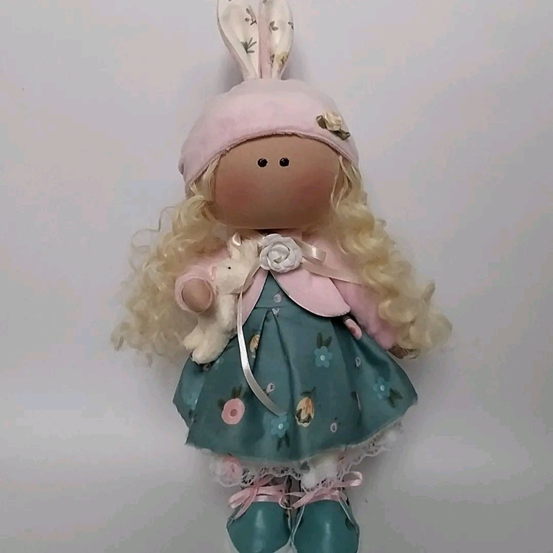 Тип подарунка: Ігри та іграшки Текстильна лялька зайчик ручної роботи. Зріст лялечки 30 см. Лялька самостійно стоїть, може сидіти. Ручки, ніжки і голова рухливі, одяг не знімається. Відправляється в новий дім красиво запакована.