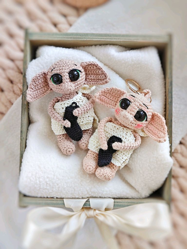 Брелок іграшка в'язаний ельф доббі , у подарунковій коробочці