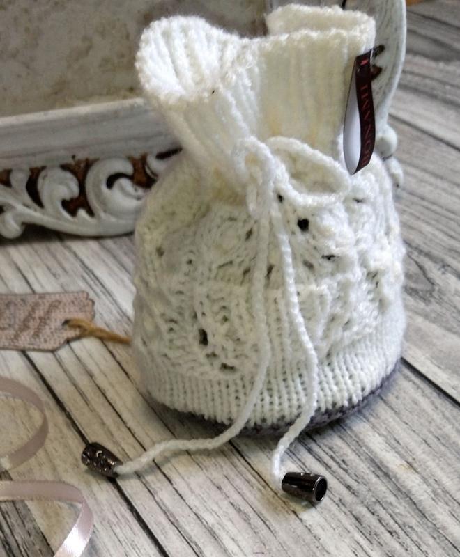 Ідея для подарунка - ажурна в'язана косметичка - кругла біла косм