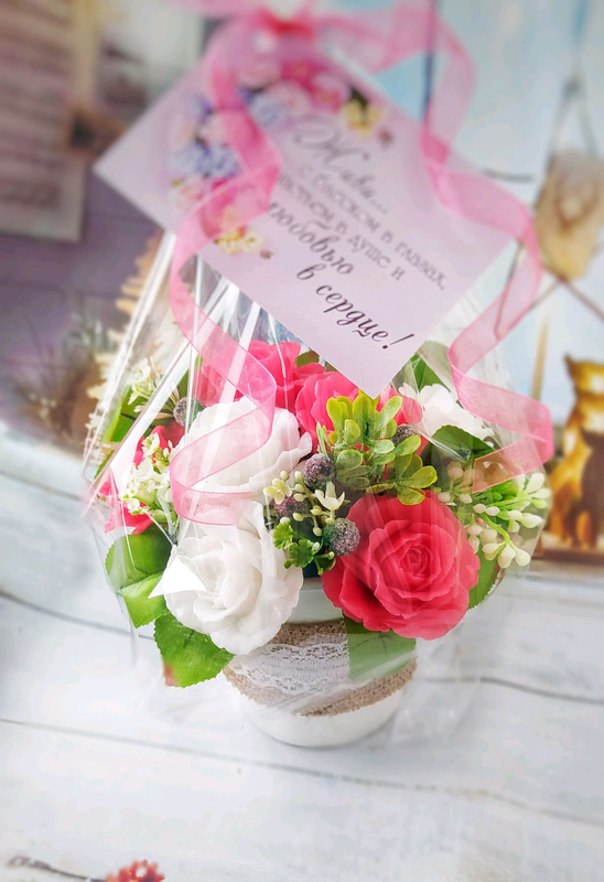 Тип подарунка: Оригінальний Кілька примірників у наявності Букет біло-червоних троянд з мила ручної роботи. У букеті 9 бутонів троянд. Виготовлені з англійської основи, швейцарських пігментів і американської віддушки.
