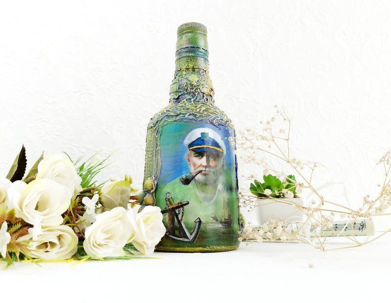 Бутылка подарочная ′Капитан′ Авторская работа в единственном экземпляре. Объем 0,5 литра. Материал стекло,акриловые краски,акриловый лак,ракушки,структурная паста. Все материалы абсолютно безопасны. Отправка по всей Украине Хорошего дня:)